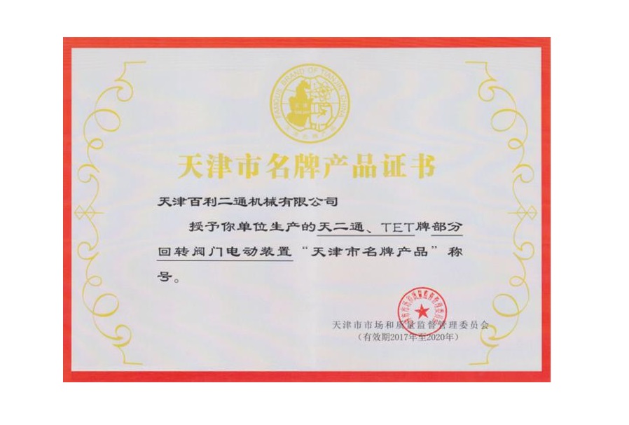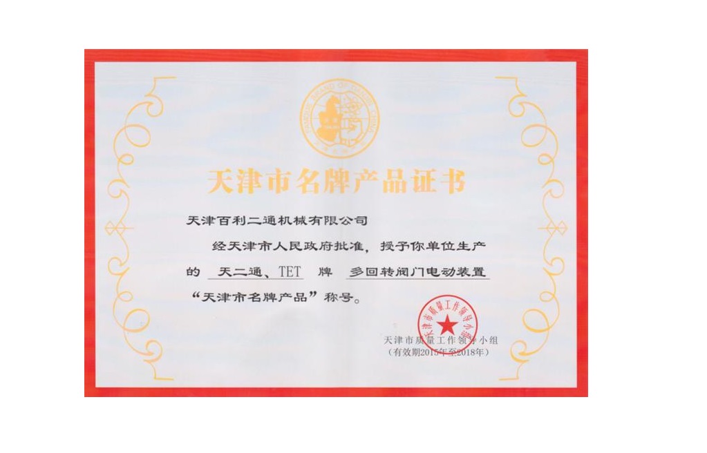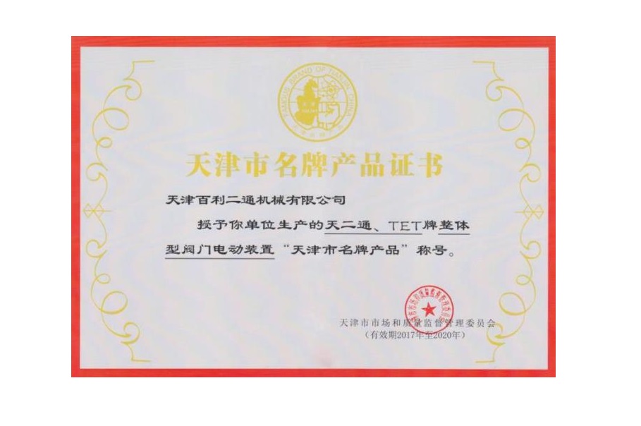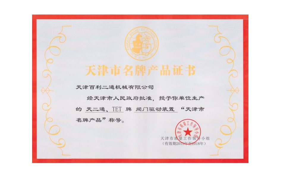 閥門(mén)驅(qū)動(dòng)裝置名牌產(chǎn)品證書(shū)