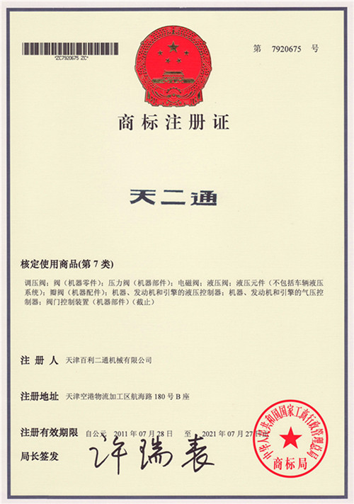 天二通 商標(biāo)注冊證