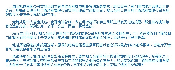 天津百利二通機械有限公司實現(xiàn)電裝產(chǎn)業(yè)整合