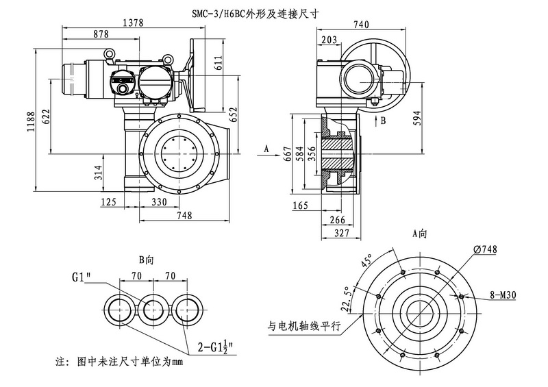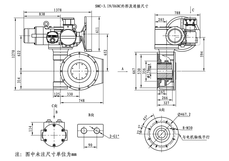 SMC/HBC系列電動裝置是SMC系列多回轉(zhuǎn)電動裝置與HBC蝸輪減速器的組合型式,它適合球閥、蝶閥等部分回轉(zhuǎn)閥門的驅(qū)動控制。SMC/HBC電動裝置具有以下特點:結(jié)構(gòu)設(shè)計堅固可靠,產(chǎn)品規(guī)格齊全,驅(qū)動轉(zhuǎn)矩范圍大且動力輸出穩(wěn)定, 具有良好的自鎖性能。 HBC輸出軸結(jié)構(gòu)獨特,裝有與閥桿連接的漸開線花鍵接頭,產(chǎn)品的安裝調(diào)試方便。