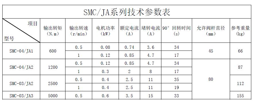 SMC/JA系列閥門電動(dòng)裝置是部分回轉(zhuǎn)型閥門電動(dòng)裝置,適用于球閥、蝶閥等類型閥門以及電動(dòng)風(fēng)門。其結(jié)構(gòu)形式為組合式,由SMC多回轉(zhuǎn)電動(dòng)裝置與JA部分回轉(zhuǎn)減速裝置相組合而成。該系列產(chǎn)品所適用的環(huán)境條件、溫度、濕度、海拔、防護(hù)等級均能達(dá)到SMC相應(yīng)規(guī)格產(chǎn)品的水平。