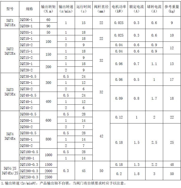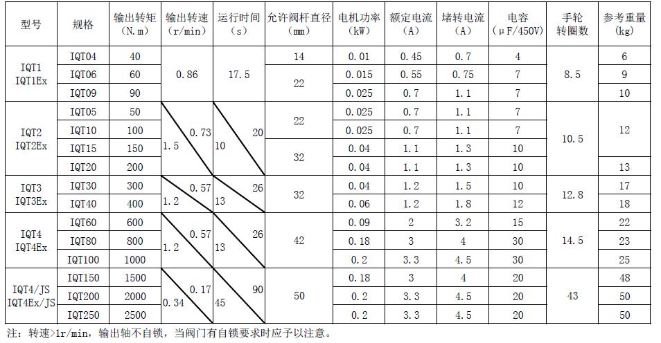 IQT1~I(xiàn)QT4/JS(220V單相電機(jī))系列技術(shù)參數(shù)表