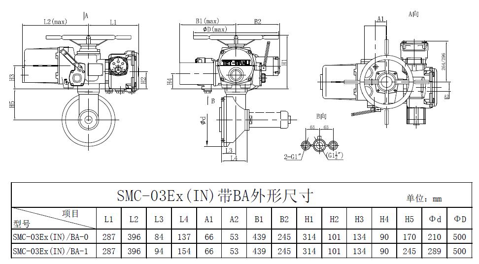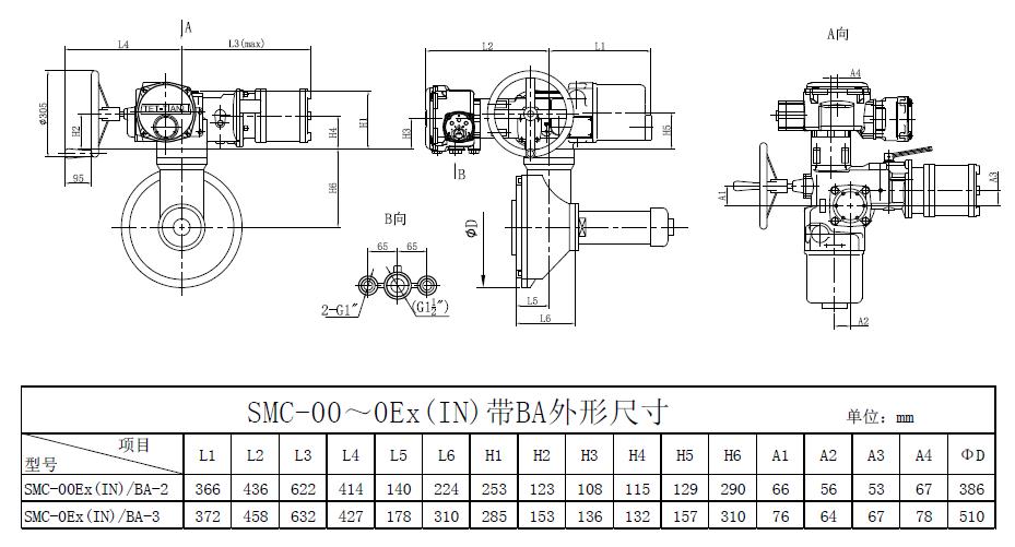 SMC/BA系列電動裝置是SMC系列中小轉矩多回轉電動裝置與BA圓錐齒輪減速器的一種組合型式,它適合閘閥、截止閥等多回轉閥門的驅動控制。SMC/BA電動裝置具有以下特點:以較小轉矩規(guī)格的SMC電動裝置與BA減速器組合可獲得更大的輸出轉矩。在輸出轉速允許的條件下,選用該產品能夠提高所選電動裝置規(guī)格的通用性,便于產品的使用、維護。