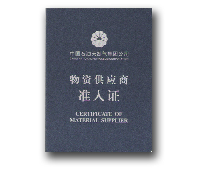 Certificate of Material Supplier of China National Petroleum Corporation