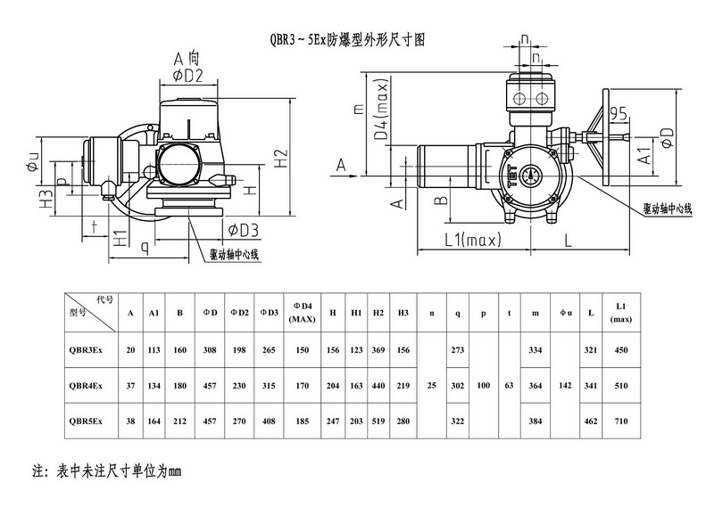 QBR3~QBR5是我公司研制的部分回轉閥門電動裝置,控制轉矩范圍:900N.m~12000N.m。該電動裝置可與球閥﹑蝶閥等閥瓣做90°回轉的閥門組合成電動閥門,其功能是控制閥門的啟閉。該電動裝置能夠進行單機或多機室內控制遠距離控制電動操作和現(xiàn)場手動或電動操作,可廣泛地應用在具有管道閥門的工業(yè)系統(tǒng)。該產品的防護等級為IP67,隔爆型產品(型號中有Ex)的隔爆等級 為dⅡBT4。